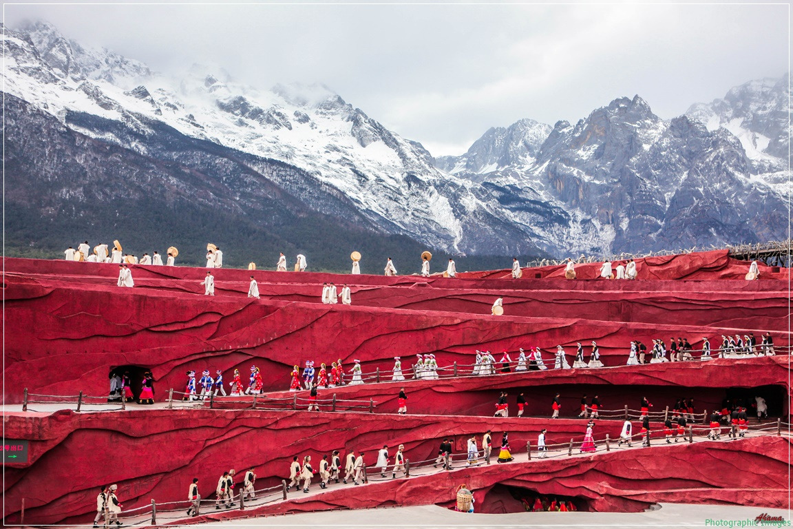 오후에 예약된 이곳 옥룡설산의 민속공연 ’인상여강’공연은 윈난성 소수민족의 마방들의 애환과 못이룬 사랑의 전설등을 보여준다 그 규모가 대륙답다는 탄성과 함께 1시간 공연이 금방 지나간다. 하지만 한번보는 것으로 충분한듯...