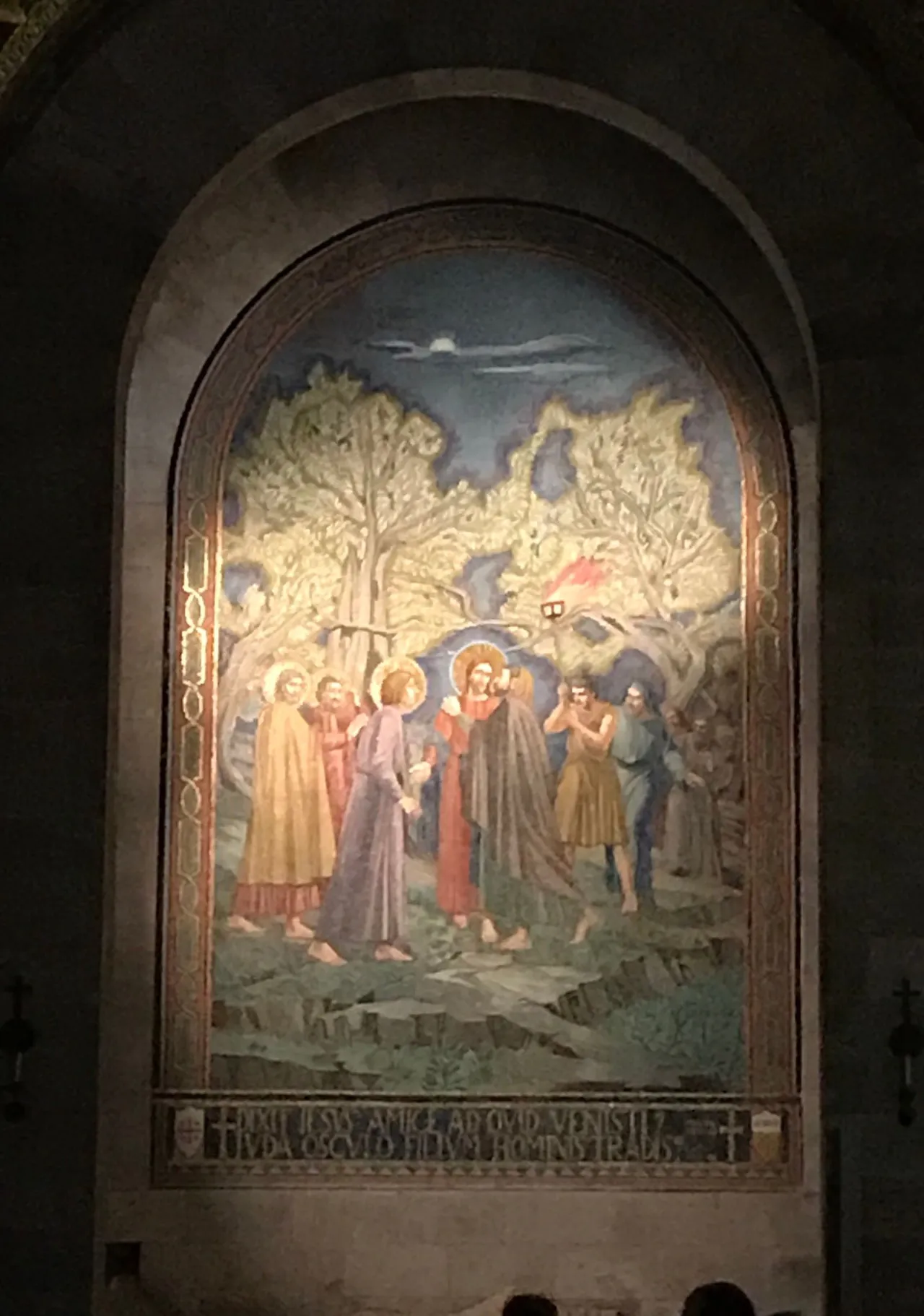 예수께서 겟세마네 동산에서 제자들과 마지막 만찬을 하신 후 기도하고 있으실 때, 유다 지도자들과 밀약을 하고 어둠 속에서 예수를 지명하는 그 장면이라 했다. 모든 것을 아신 예수님은, 라틴어로 적힌 “Judas, do you betray the Son of Man with a kiss?” (유다야, 네가 입맞춤으로 인자를 넘기느냐?)로 모든 상황을 인지하고, 체포당하는 상황, 유다의 배신, 혹시 유다 내면의 갈등, 이후의 예수의 고난, 십자가형과 집행, 이후 스스로 목숨을 끊어 마친 유다의 삶 등 오래되어 선명도가 떨어진 벽화 한 점으로 발길을 멈췄던 기억이 새롭다.
