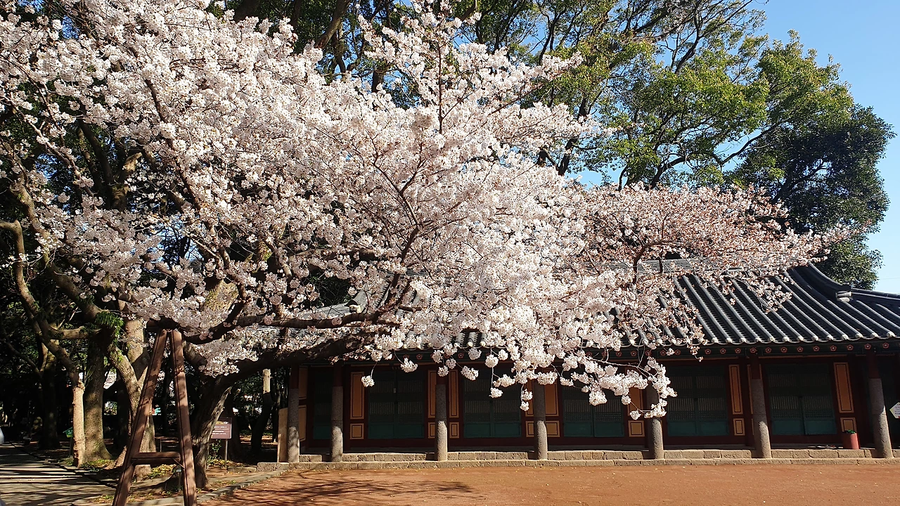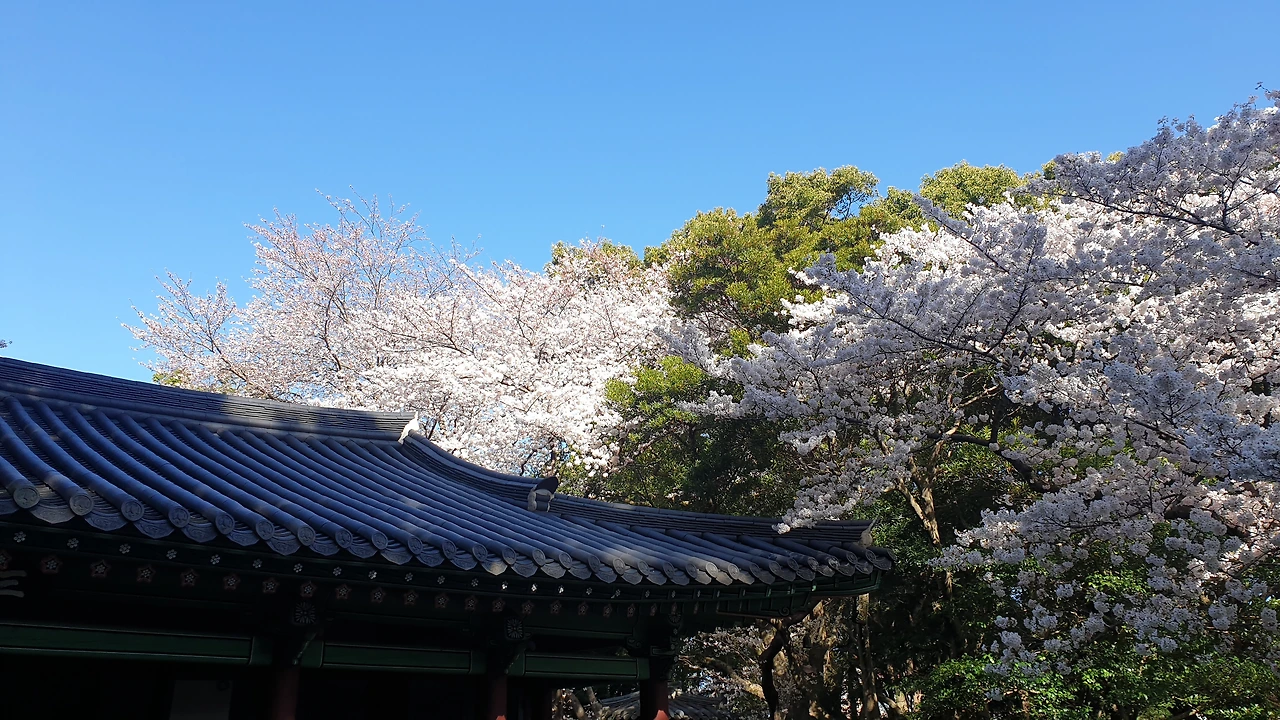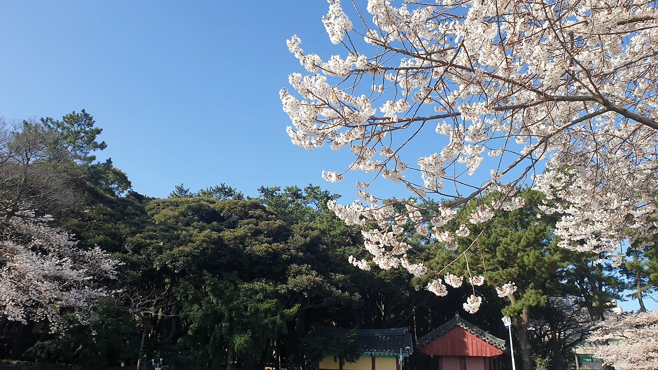 9시 30분에 만나기로 했는데, 아이 학교 데려다주고 삼성혈에 도착을 하니 8시 40분이었다. 잘 되었다싶어 오전의 삼성혈에 입장 했더니 벚꽃이 한창인 그곳은 참으로 아름다웠다. 많은 사람들이 DSLR 카메라를 들고 흐드러진 벚꽃나무를 열심히 찍어대었다. 문득 육지에 두고 온 카메라가 그리워졌지만, 휴대폰 화면을 가장 밝게 당겨서 열심히 하늘과 어울어진 벚꽃을 찍었다. 날씨도 상쾌하고 하늘도 청명하고, 모든 것이 좋은 시작의 하루였다.
