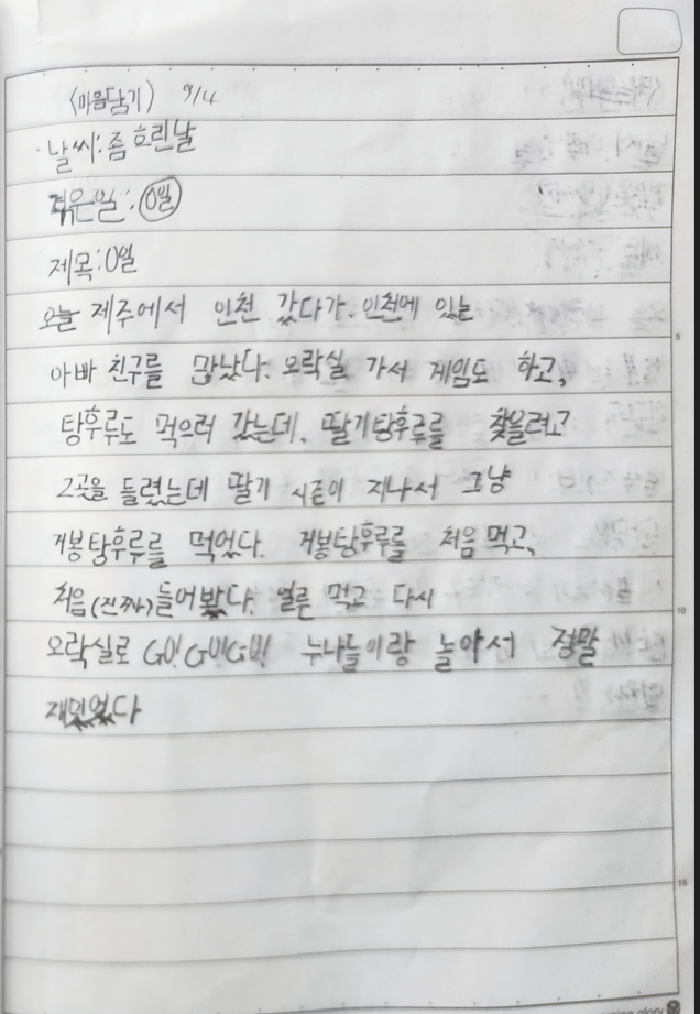 남편 친구 집에는 장성한 두 딸들이 있는데 아이가 어렸을 때부터 만나면 잘 놀아주었다. 누나들과 노는게 재밌었고, 탕후루에 대한 설레는 마음을 일기장에 적은 걸 읽었다. 문득 아이에게 관심을 기울이는 엄마가 맞는지 생각해본다. 아이가 이 날 딸기 탕후루를 찾다가 거봉 탕후루를 먹었구나..그게 아이를 설레이고 재미있게 만든 일 중에 하나라는 걸 알게 된다. 아이가 단 걸 먹는 걸 진저리치게 싫어하는 엄마이지만 딸기 탕후루를 만나면 한 번 사줘야겠다고 생각했다.