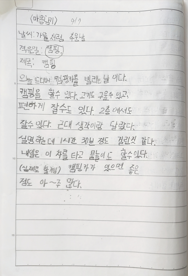 1시간이 넘는 시간을 따라다니며 설명듣고, 계약서 작성을 했다. 아이는 캠핑카만 픽업해서 바로 출발할 수 있는 줄 알았나보다. 생각보다 설명듣는 시간이 길어서 지루해했다.