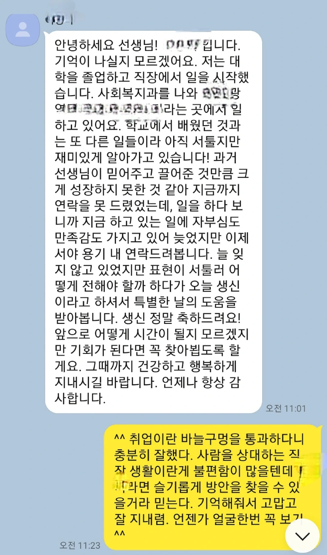 이로부터 몇 해 뒤부터는 아이들과는 연락을 끊기 시작해 이제는 이런 메시지를 받을 일도 없지 싶습니다.