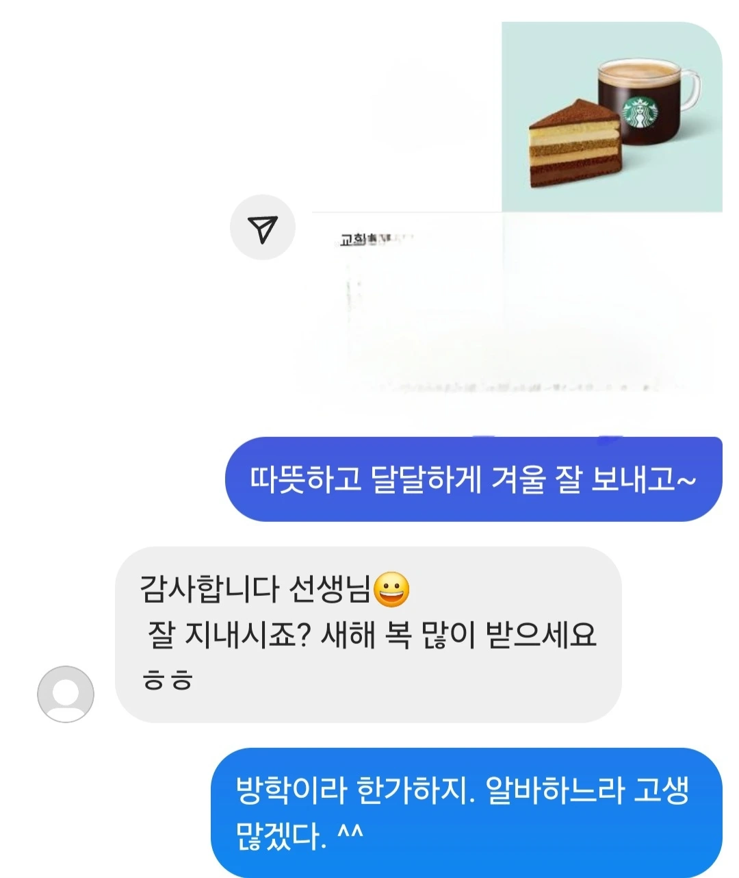아내는 잘 마시지도 못하면서 자꾸 커피쿠폰만 받냐 한다. 그래도 받은 쿠폰 절반은 아내에게 그리고 나머지는 아름아름 알아가는 이들에게 뜬금없이 전송한다.