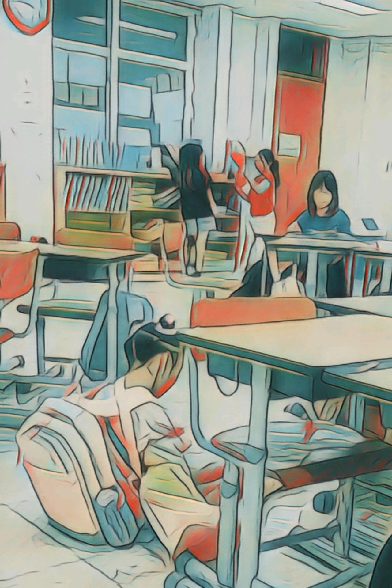 등교하자마자 저러고 있는 것에 원인이 있을까 싶다. 상호작용이 거의 이뤄지지 않으니 대화나 설명 자체가 의미 없다.
