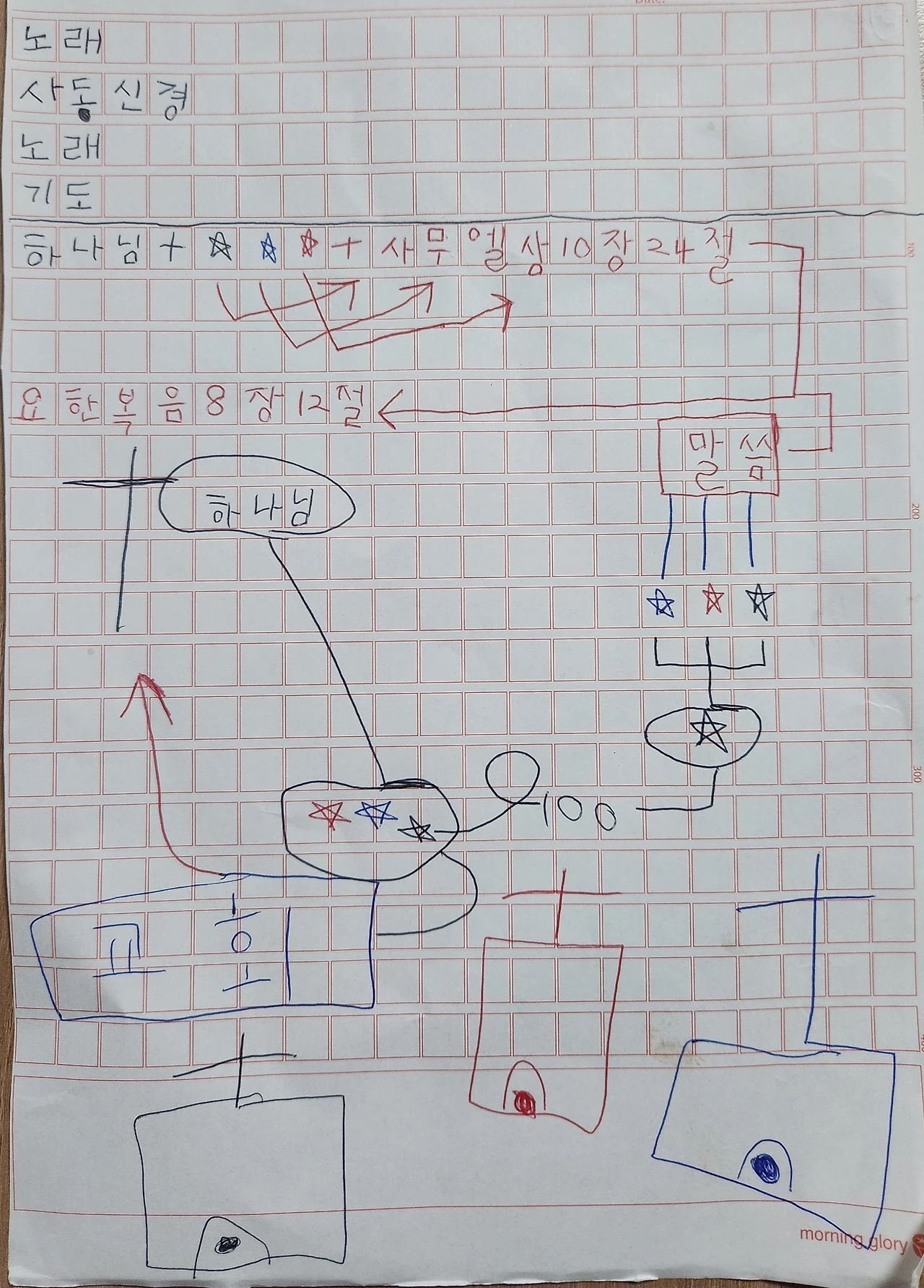 - 예배 순서마저 적어 놓은 아들이 그저 귀엽습니다. 저 보다 나은 것 같아, 기쁨이의 미래가 기대됩니다. 아들을 더 깊은 차원으로 사랑해 들어갈 오늘이 기대가 되고 생각만해도 가슴이 뜁니다. 이 기쁨을 독자님들, 작가님들께 나누고 싶었습니다.