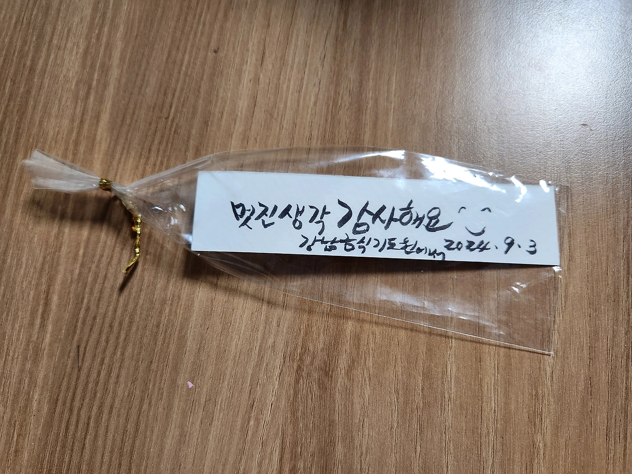 그 안에는 멋진 생각 감사해요 ^^ 강남 금식 기도원에서 2024.9.3이라는 글이 적혀 있었다