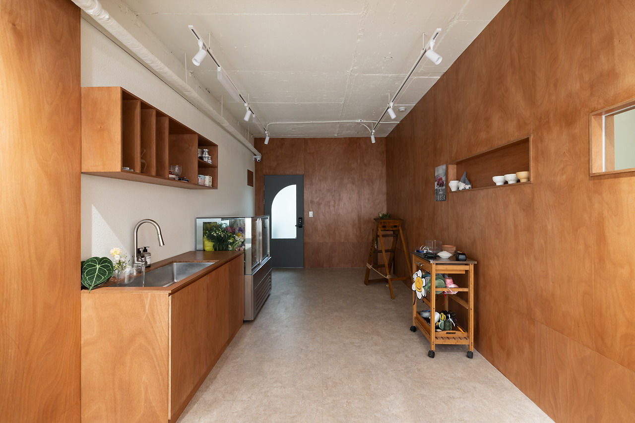 작은 공간이지만, 공간분리를 확실하게 하고 싶었어요. 제가 서있는 시간이 많다 보니 사무 공간에서는 누울 수 있는 여백이 필요했죠. 개인 집무실, 꽃이 있는 중앙 홀, 수강생 분들을 위한 수업 공간 이렇게 총 세 부분으로 나누었어요.
