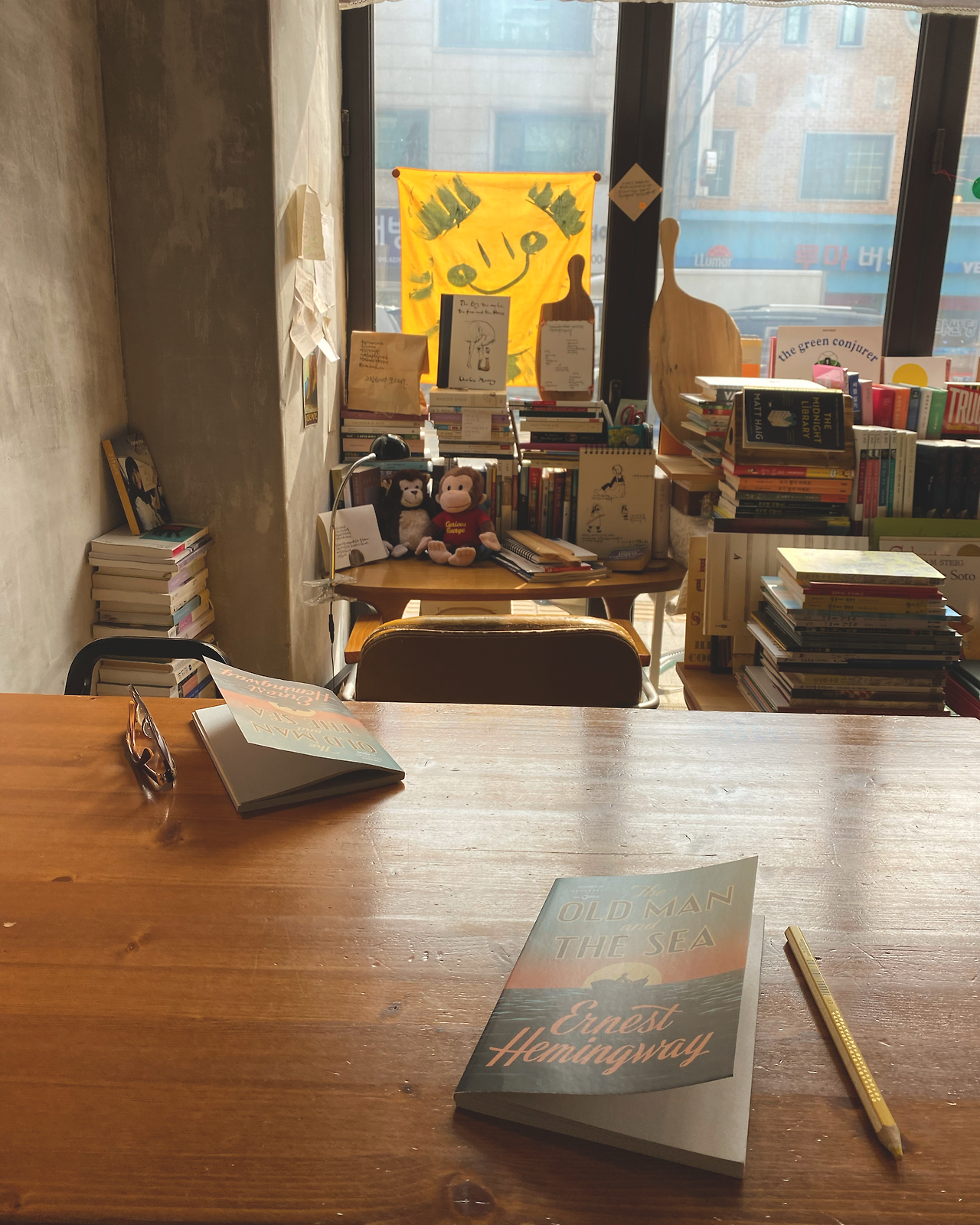 통유리 너머로 햇살이 한가득 쏟아지던 그날의 책방은 지금도 선명하다. <노인과 바다> 원서를 꺼내며 커피를 내리는 책방 사장님을 기다리는 짧은 시간엔 긴장감과 묘한 설렘이 뒤섞여 있었다. 몇 년간 혼자 이어오던 취미를, 누군가와 처음으로 나누게 되는 순간이 될 터였다. 영어원서를 읽는다고 하면 영어를 잘한다고 오해할까 싶어 주변 사람들에게도 쉽게 말을 꺼내지 못하곤 했다. 하지만 영어원서를 일정 기간 접해본 사람이라면 알게 된다. 영어를 잘하지 않아도, 저자의 목소리에 귀를 기울이다 보면 어느새 빨려들어가게 되는 ‘스토리의 힘‘이 있다는 것을 말이다. 그 신기한 경험이 자연스레 다음 책으로 이어진다면, 그건 영어라는 언어를 도구로 사용할 수 있게 되었다는 의미가 된다. 그렇기에 이 순간은 그간 누군가와 나누지 못했던 과정들을 공유하는 시간이자, 내가 아직 만나지 못한 세계로 안내받는 시간처럼 느껴졌다.