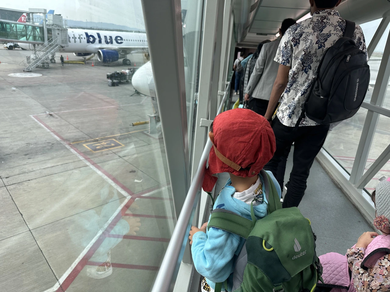 비행기 탑승할 때 아들과 대화를 한걸 들은 걸까? 대한항공 태그를 가방에 단 스카르두 출신의 한 남성이 아들에게 이름이 뭐예요? 라며 한국어로