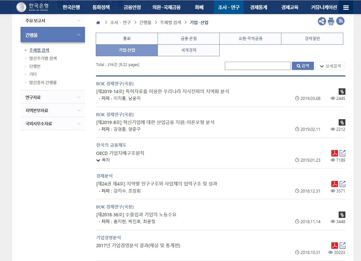 한국은행 조사연구 > 간행물 > 주제별 검색 > 기업 산업