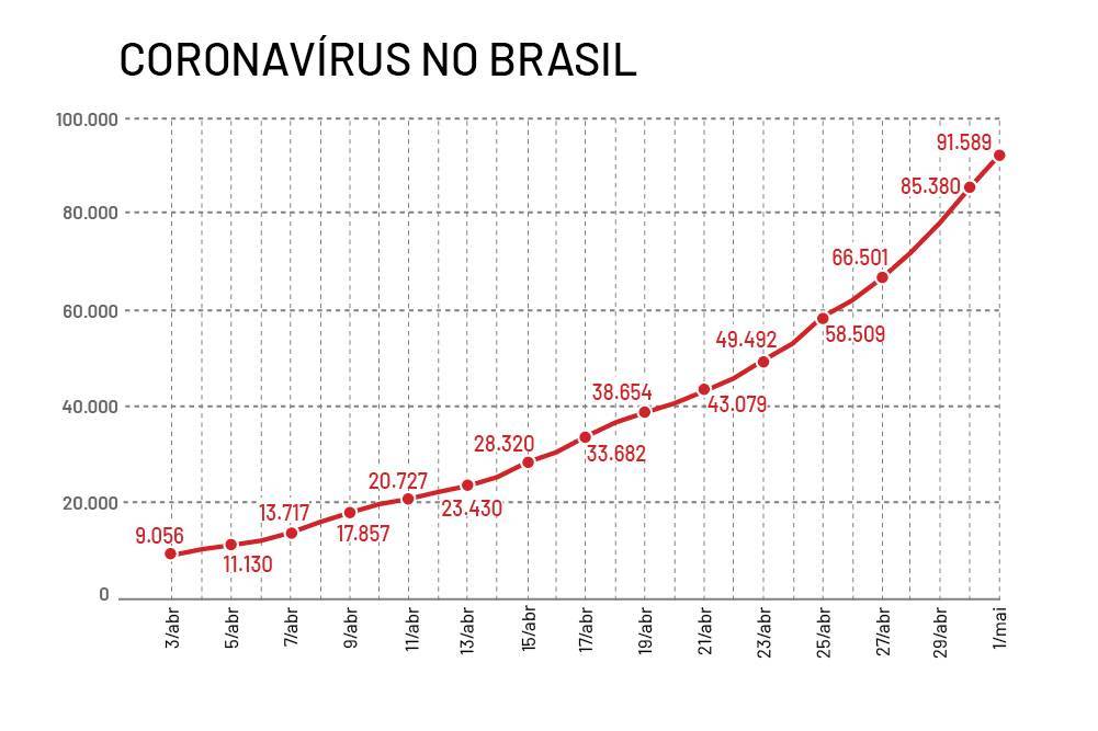 2월 26일 첫 확진자 보도가 나온 이래, 브라질의 감염 확진자 및 사망자 수는 급격한 추세로 증가하고 있으며, 그 속도가 줄기는커녕 기울기가 점차 더 빨라지고 있다.