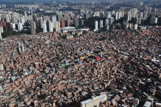 브라질의 빈민촌. 거리두기 자체가 불가.