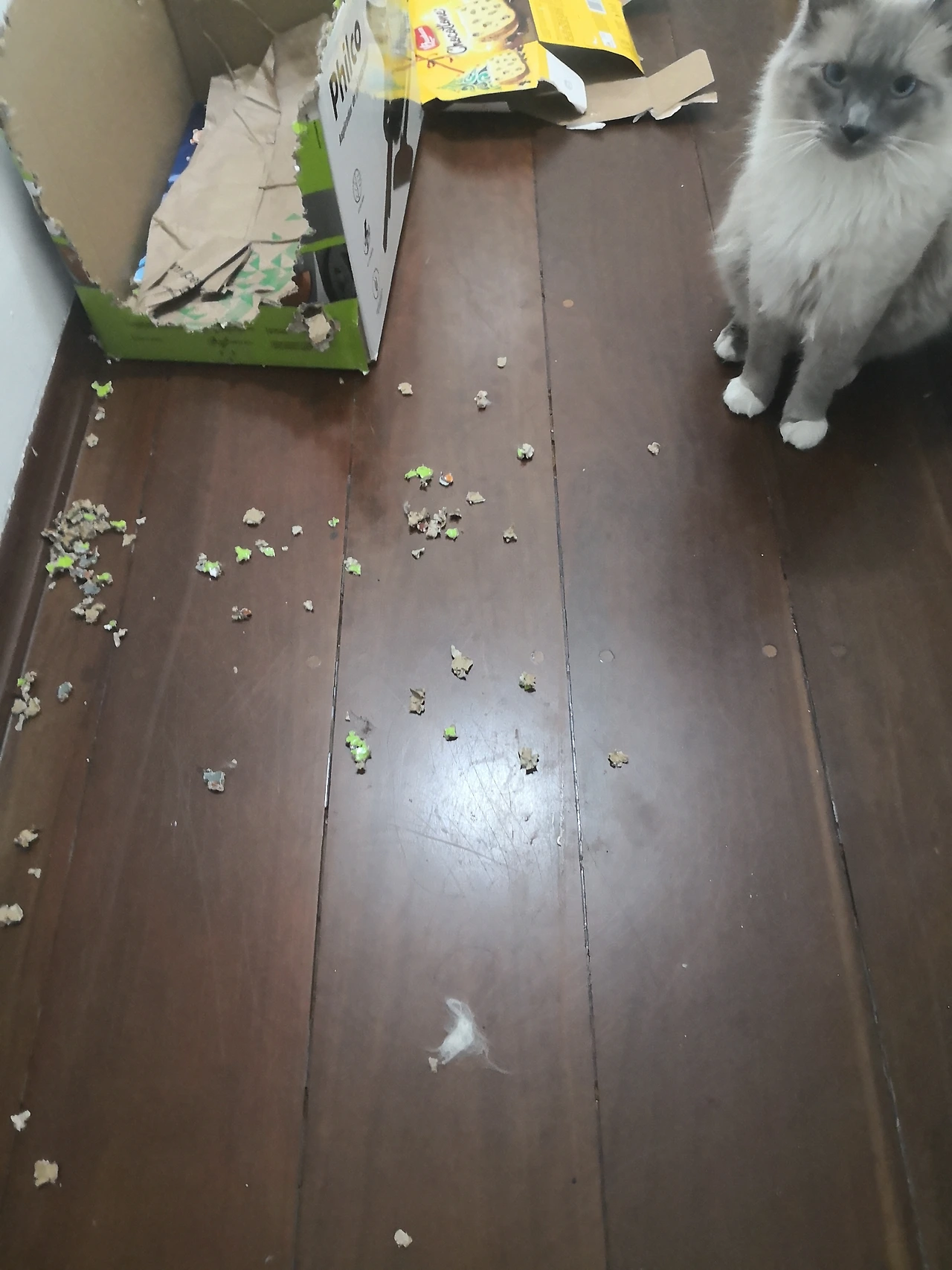 그래서 청소를 한 직후에는 귀신같이 나와 더럽힐 것들을 찾기 시작하는데 박스가 보통 그 표적이 된다.