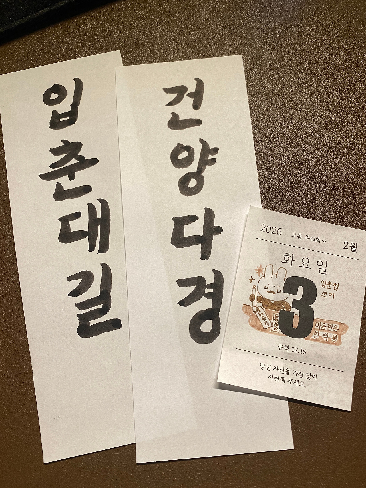 입춘첩을 직접 써서 붙이고 있다. (봄 좋아 인간).