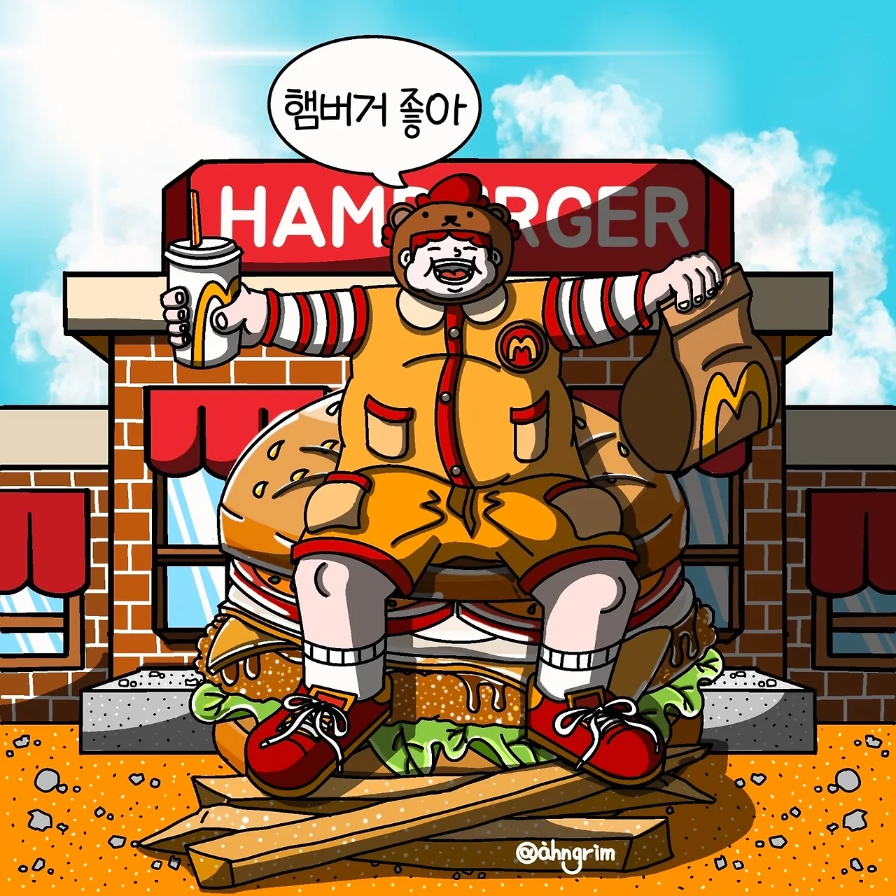 내가 만든 캐릭터에 맥도널드를 입혀보니 재밌었어요. 이런 걸 패러디라 하나 봐요. 시리즈로 많이 그리고 싶습니다ㅎ