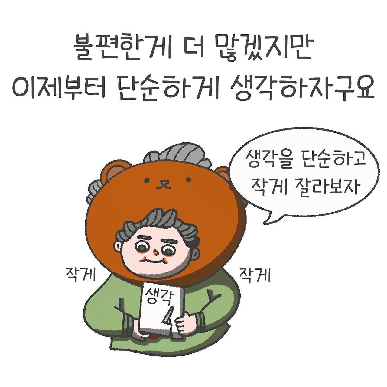 생각을 많이 하지 말고 단순하게 생각하려고요.