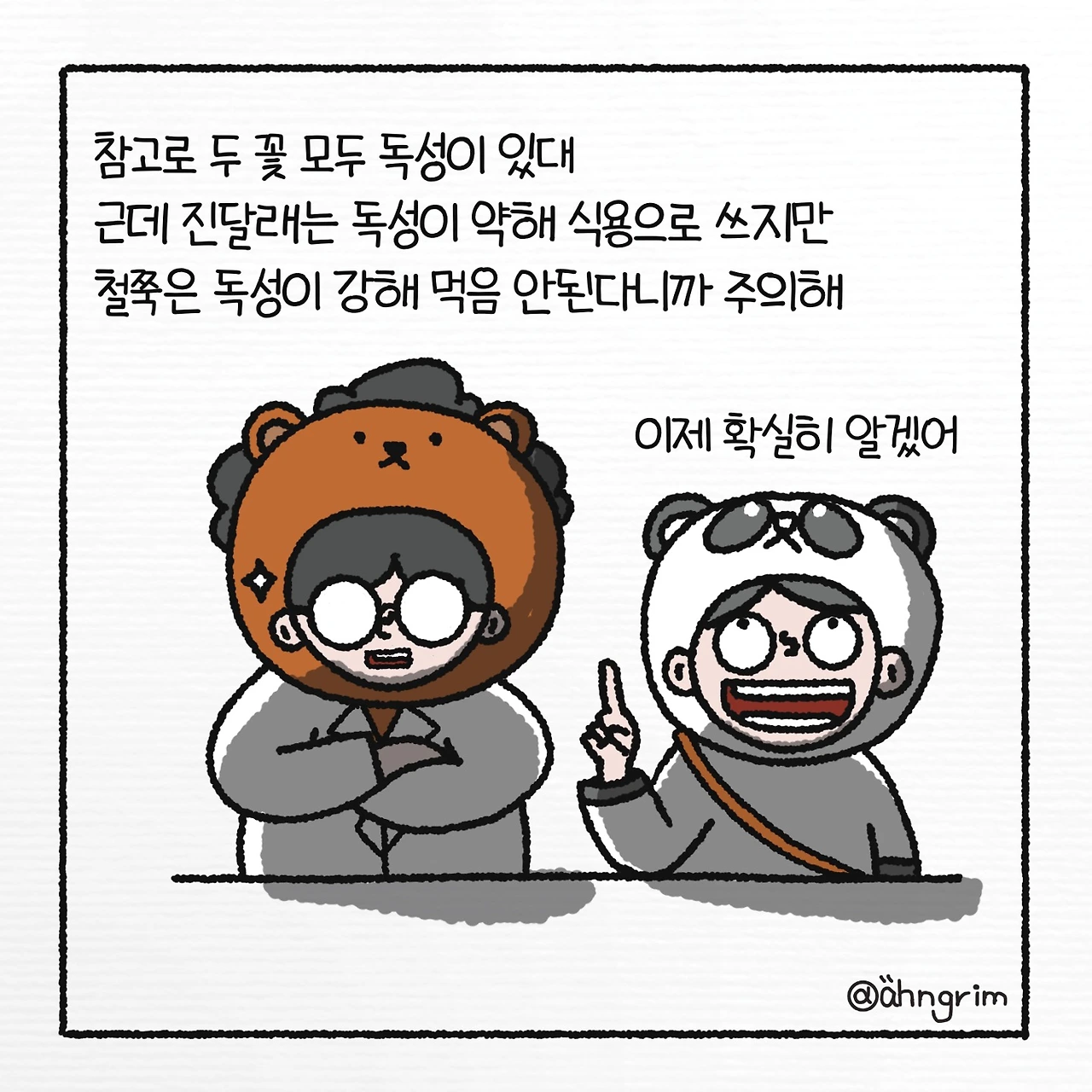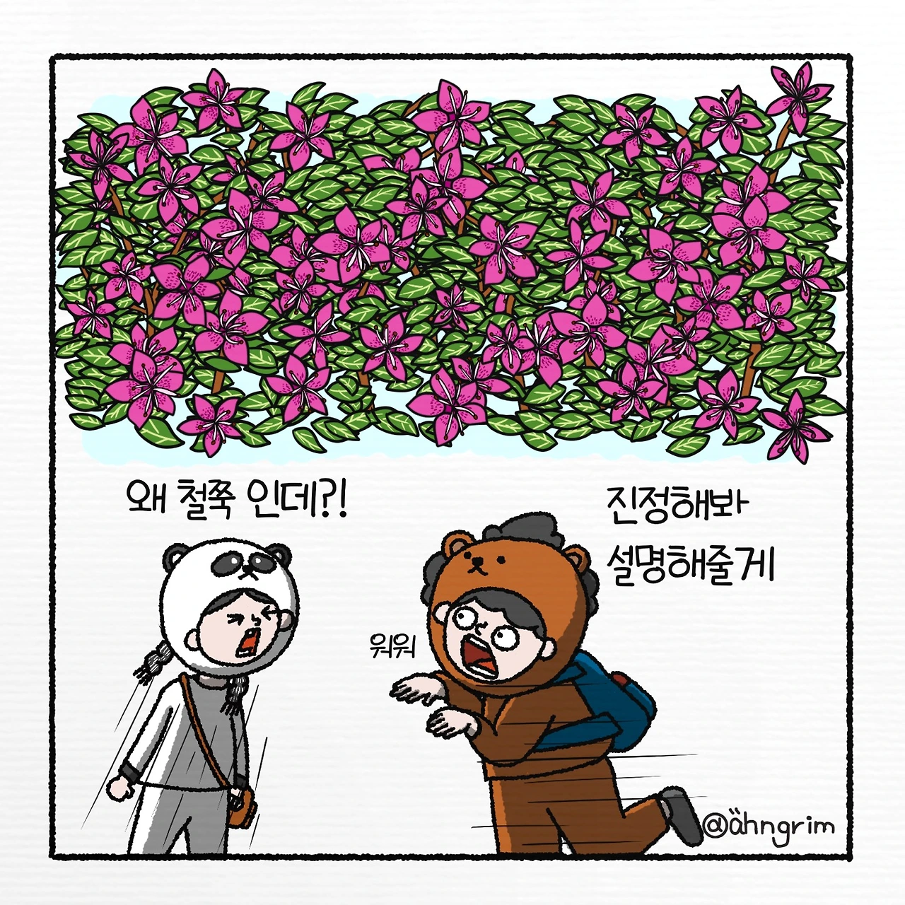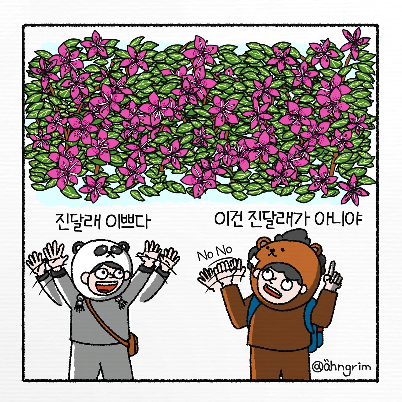 누가 들어도 헷갈릴만한 이 대화가 오고 갔다. 맞다. 진달래와 철쭉은 너무 비슷했다. 어디선가 구분법을 봤는데 슬쩍 글로 본터라 까먹고 있었다.