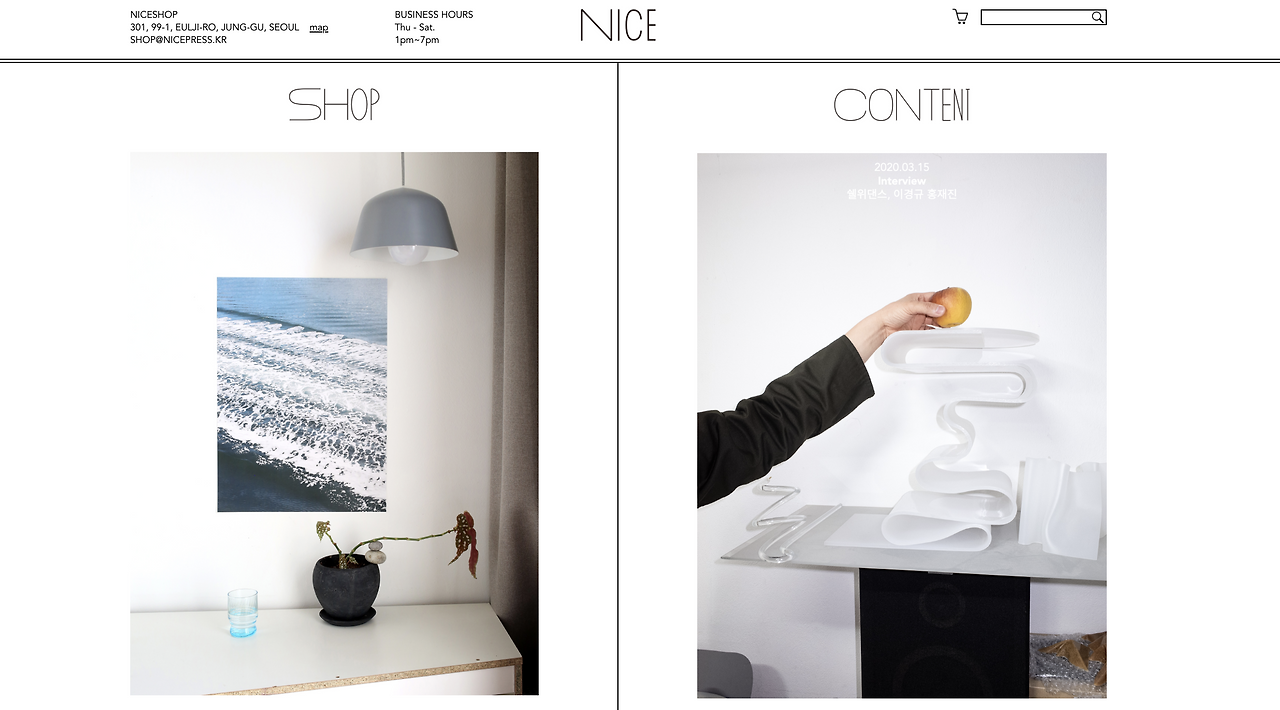 나이스숍의 오프라인 매장은 서울 중구 을지로에 위치해 있습니다. 운영 시간은 매주 목, 금, 토 3일간, 1시부터 7시까지. 코로나로 인해 단축 운영하는 경우가 있다고 하니 방문하실 계획이 있다면 인스타그램을 확인하고 가시는 편이 좋을 것 같습니다. 방문이 어려우신 분들은 온라인 나이스숍도 있습니다.