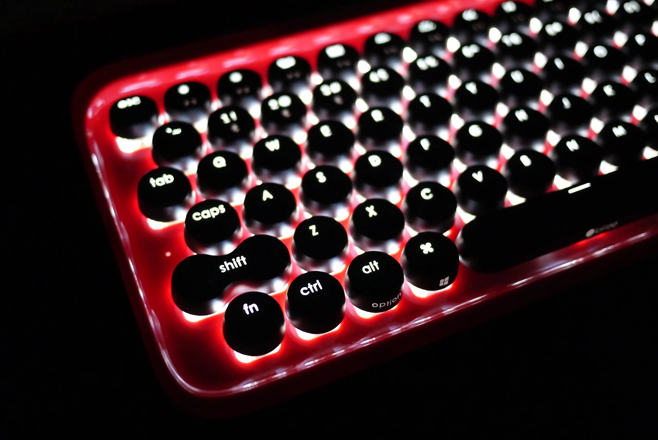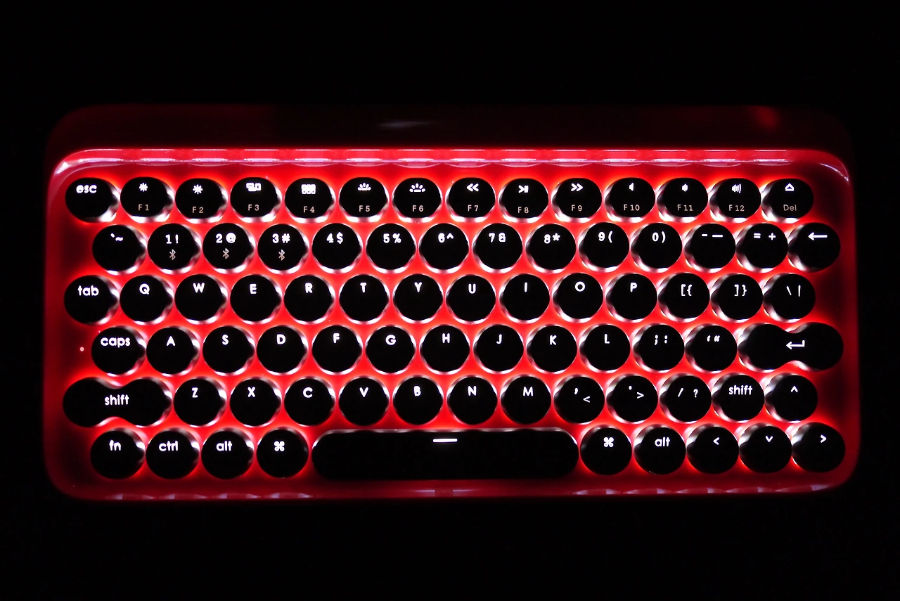 애플 키보드와 같은 배열의 블루투스 기계식 키보드인 로프리 사진입니다.