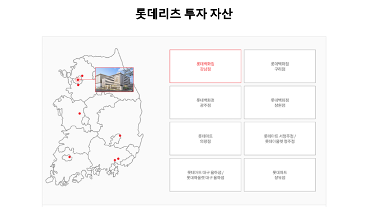 롯데백화점과 롯데마트를 보면 국내 주요 핵심 상권에 있는 것을 알 수 있는데요.