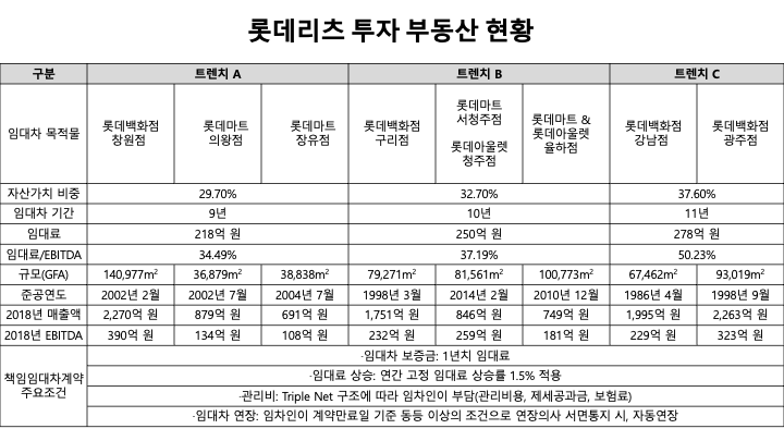롯데쇼핑은 롯데리츠의 메인 앵커로 9년에서 11년간 마스터 리스(책임임대차) 계약을 맺고 고정 임대료를 지급합니다.