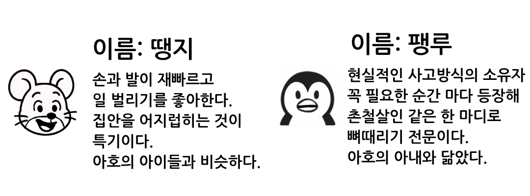 각각의 특징을 가진 캐릭터들은