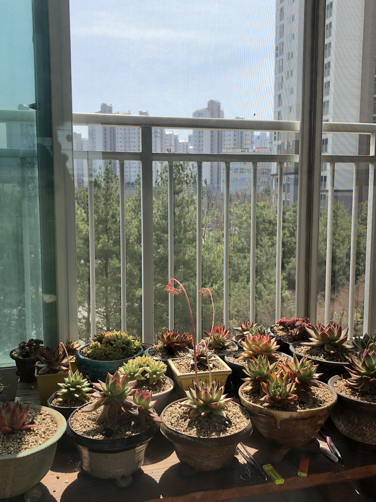 거의 10년이 지난 지금. 이제 이 집에는 세 남자만 산다. 유학생이 된 K, 지방으로 회사를 다니는 그의 동생이 간헐적으로 다녀가는 이 곳에 아저씨 역시도 하루 중 그리 많은 시간을 머무르지 않으신다. 부엌 대리석 싱크대 위에는 그때그때 밖에서 사 온 음식이 담겼던 플라스틱 용기, 비닐이 쌓인다. 새로운 가사도우미 아주머니가 일주일에 한 번 드넓은 집안 곳곳을 청소하고 가신다. 깨끗하고 짐도 별로 없는 이 집은 고요가 흐른다. 오직 일 년 내내 전면 창이 활짝 열린 베란다에서, 아저씨의 무수한 다육 식물들만이 화분 위에 주저앉아 조용히 이 집을 지키고 있다.