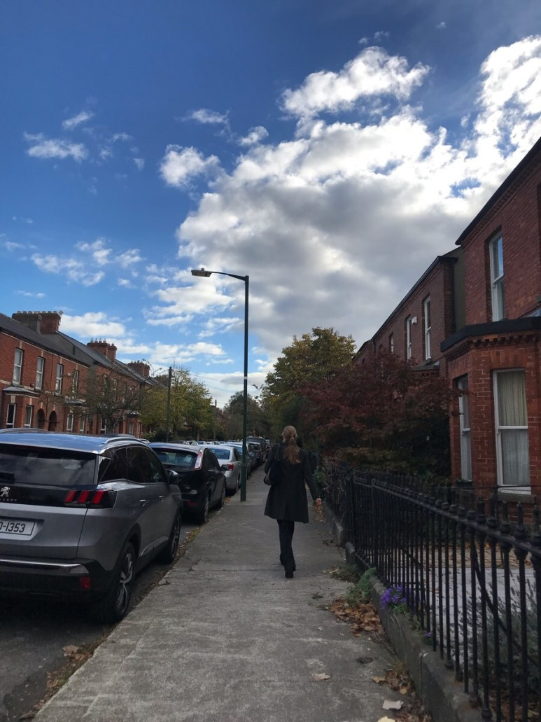 다시 배낭을 메고, 캐리어를 끌며 숙소로 걸어가던 우리는 천천히 걷기 시작했다. 걸음걸이가 느린 두 여행자는 역시나 더블린의 어느 가정집들이 즐비한 좁은 거리마저도 재빠르게 지나갈 리가 없는 법이다. 아무리 피곤하고 지쳐도. 다닥다닥 붙어있는 집들, 각 집마다 색깔을 다르게 칠해둔 문, 갑자기 올려다보는 하늘, 그 거리에서 느껴지는 찬 공기. 하나같이 다 새로운 풍경이어서 우리는 마치 밥을 꼭꼭 씹어먹듯, 걸음을 더 늦춰가며 사진을 찍었다.