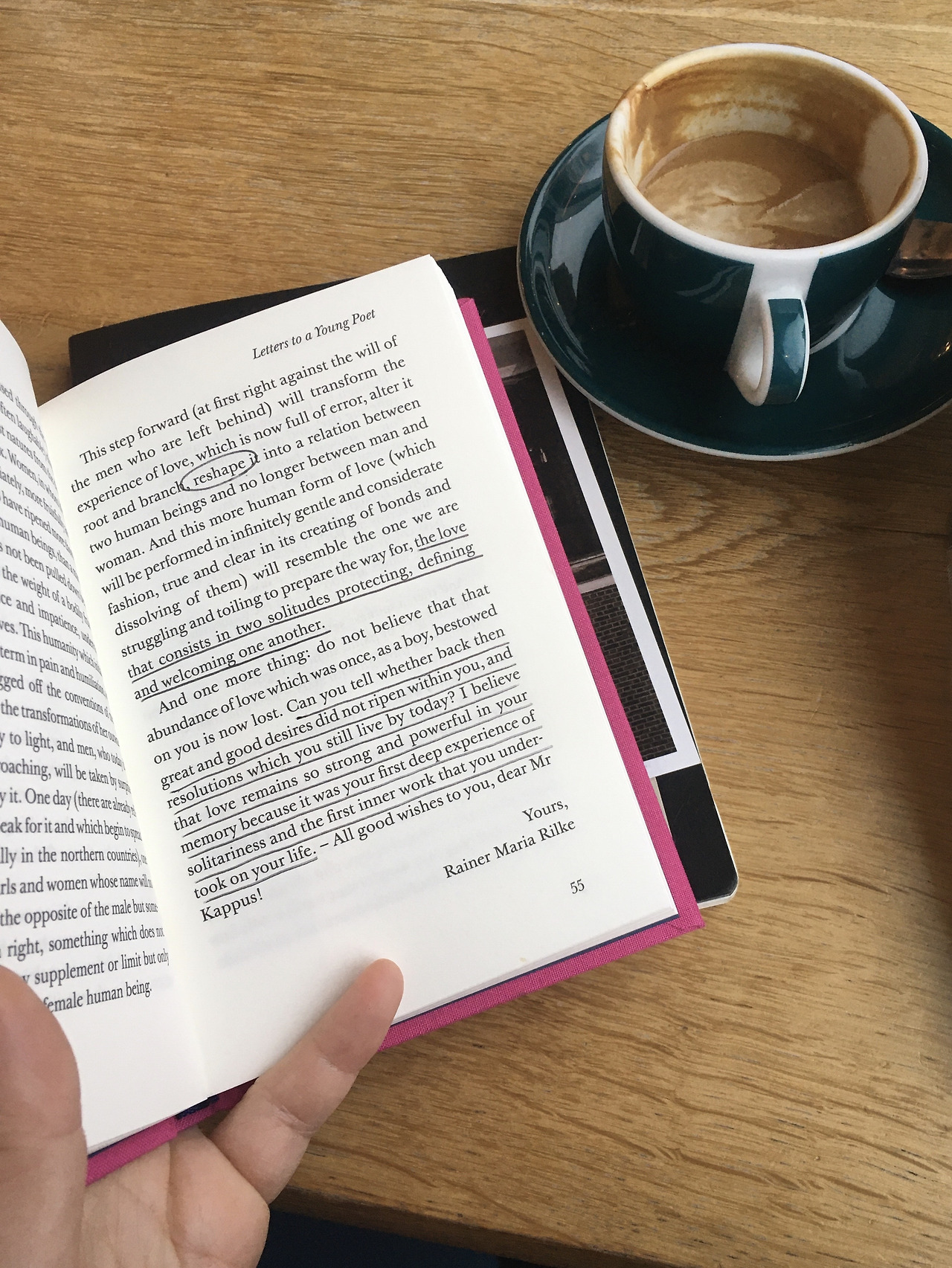 정신없는 일주일을 보낸 후 찾아온 아침. 한 겨울 서리 같은 토요일 이 시간마다 나는 요즘 책 한 권을 야금야금 읽는다. laptop-free인 옆동네 카페에 가서 오트 플랫화이트 한 잔 시키고 앉아 책을 펴는 순간 드는 그 기분이란. 마치 한 주간 쌓인 피로가 녹는 느낌이다. 요즘 읽는 책은 라이너 마리아 릴케의 <젊은 시인에게 보내는 편지>.