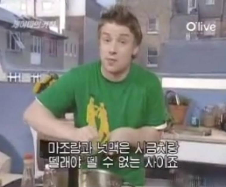 학창 시절, 일찍 하교를 하는 날이면 나는 TV를 보며 한가로운 오후를 보내곤 했다. 그 한가로운 시간이 기억이 나는 이유는 어느 유명한 요리사 때문이다. 여느 때와 같이 하교를 하고 TV를 틀었던 어느 날, 그날도 어김없이 요리 채널을 틀었는데 왠 잘생긴 외국 남자가 나오는 게 아닌가. 요리사라는 그 훈남이 사용하는 스튜디오의 생김새며, 생전 듣지도 보지도 못했던 재료들이며(그때는 로즈마리를 툭툭 뜯어 닭고기 위에 뿌리는 것도 신기했다.) 모든 게 흥미로웠다. 그리고 무엇보다도 그의 발음! water를 워러가 아닌 우어터라고 발음하던 그 소리가 너무나 매력적으로 들렸다. 그는 바로 제이미 올리버였다.