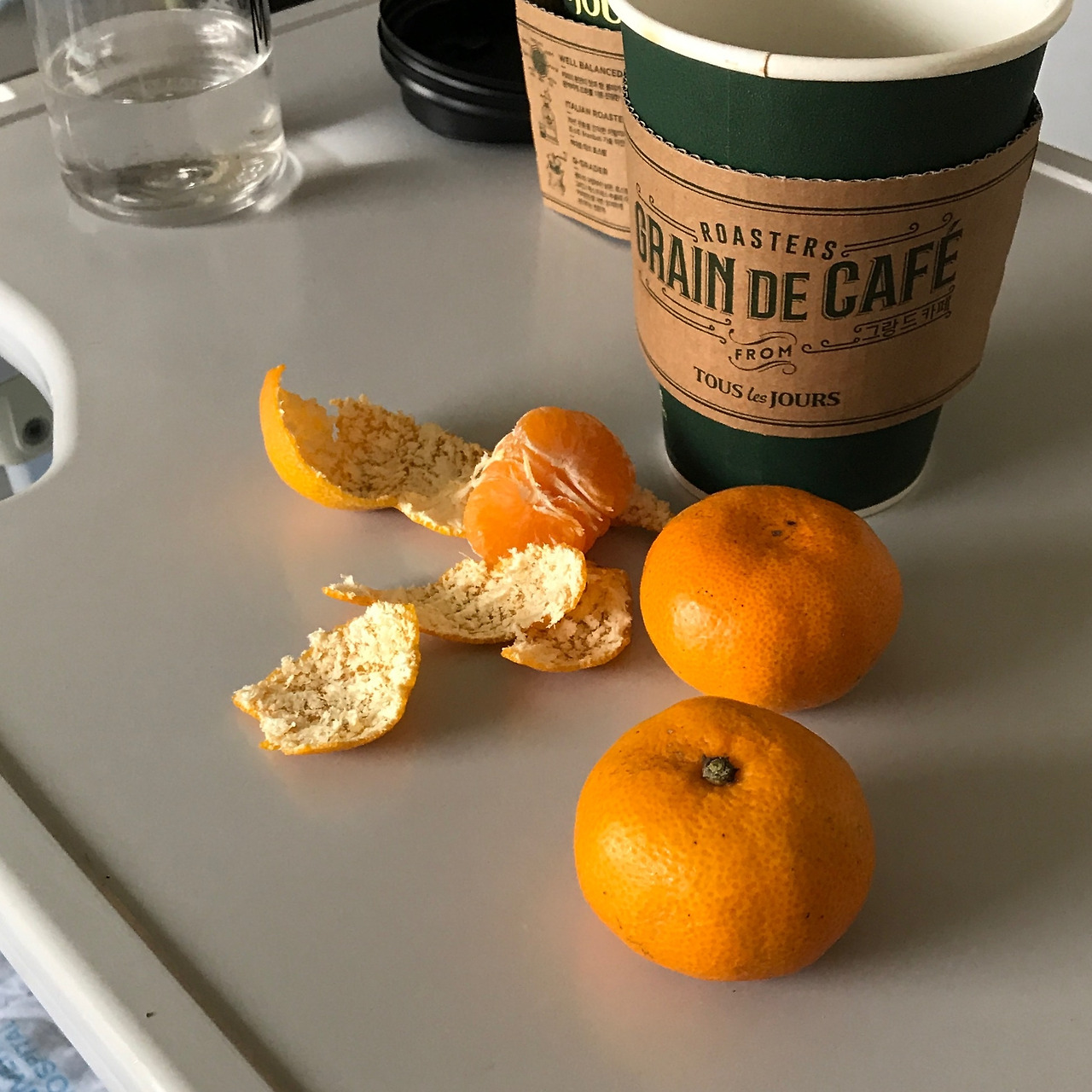 입원한 지 3일째 되는 날 아침, 드디어 먹고 마실 수 있게 되었다. 물 한 모금 마시며 느낀 그 상쾌함이란! 아무 맛이 안나는 병원식 미음은 영 성에 안차 죽집에서 호박죽을 사서 한술 뜨니 그제야 생기가 돌았다. 그리고 내내 마시고 싶던 커피 한 잔과 간식으로 나온 귤 하나를 까먹으며 조금은 새로운 아침을 보냈다. 별거 없는데 그 아침은 전혀 새로운 시간으로 나에게 다가왔다.