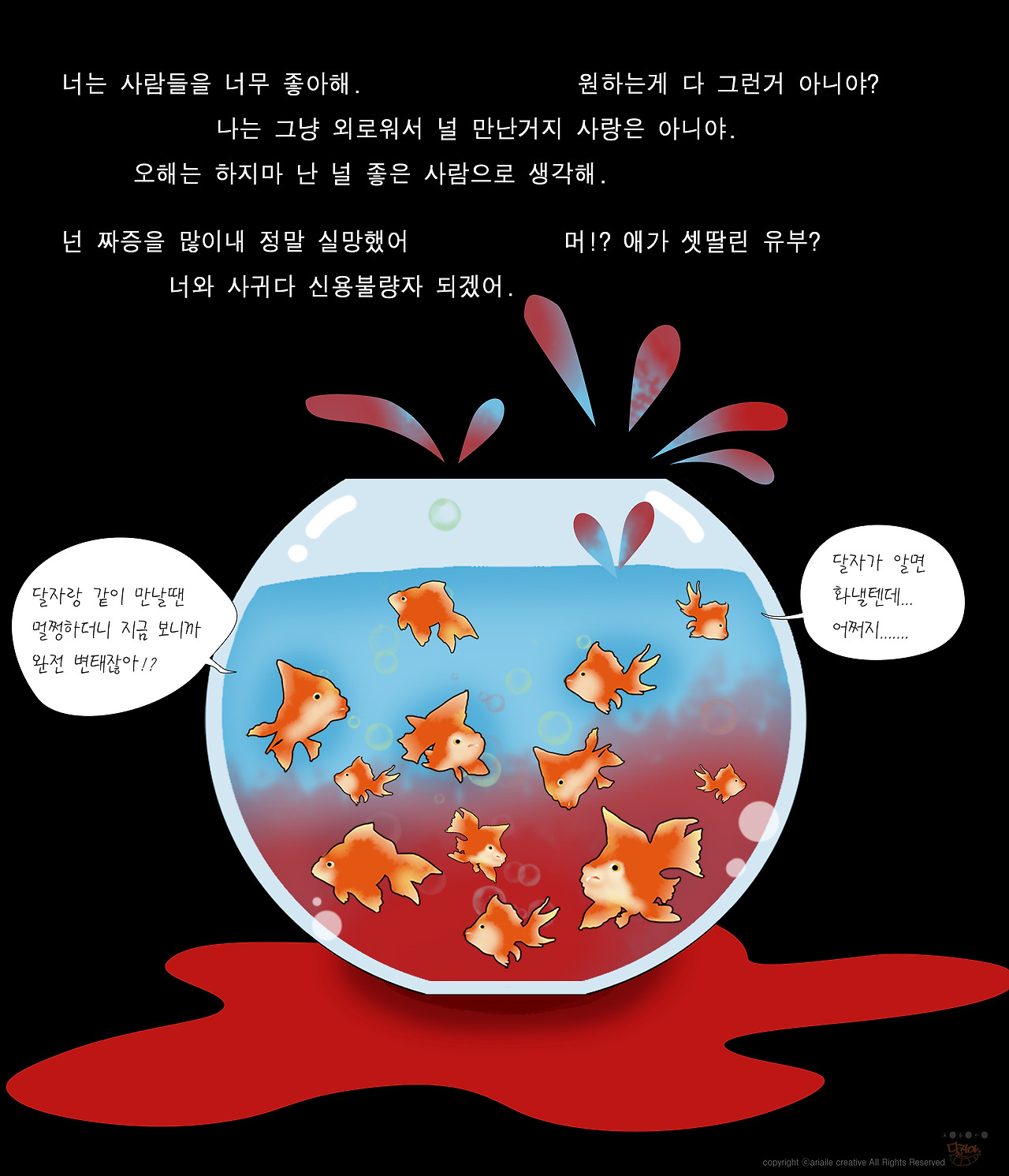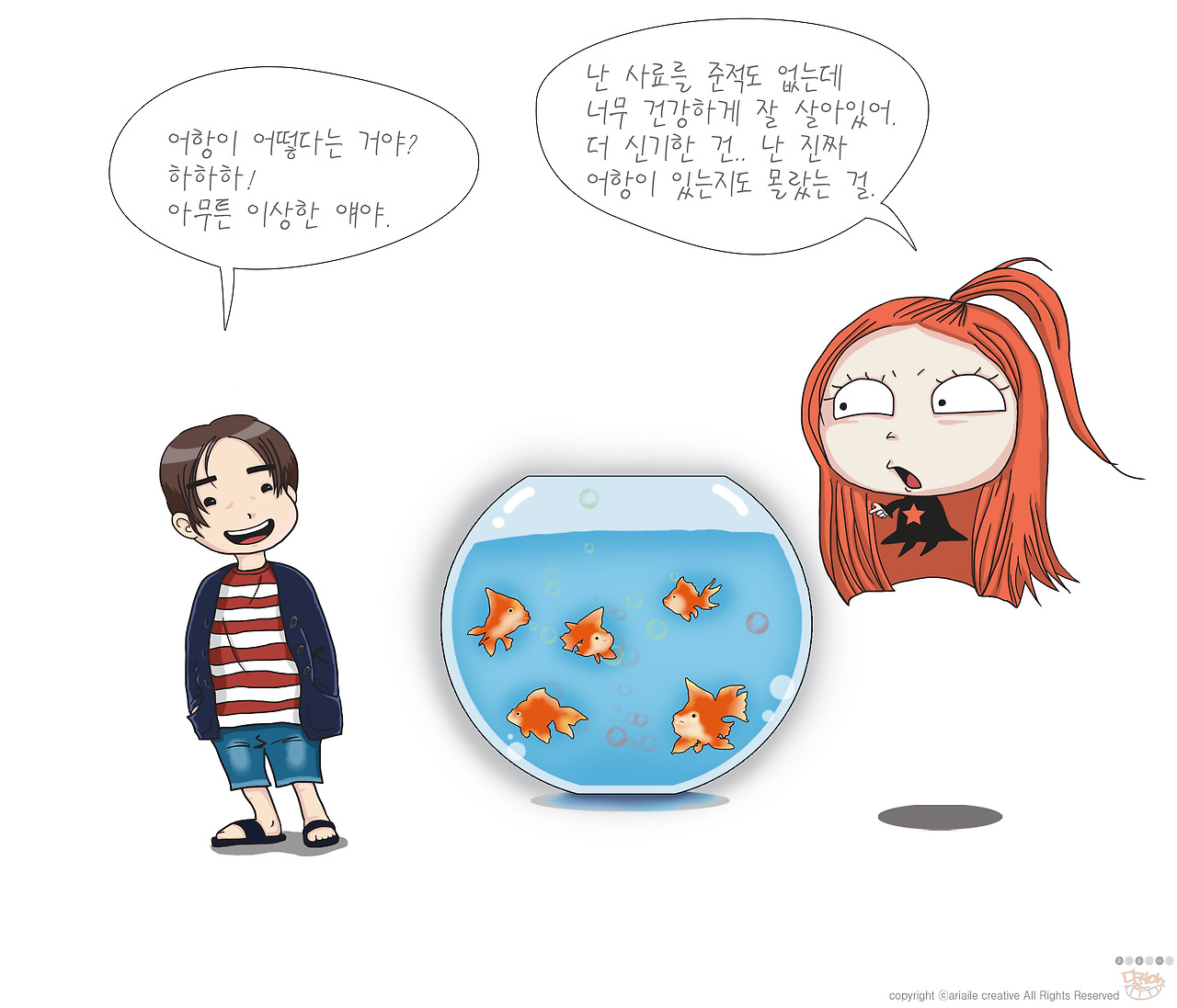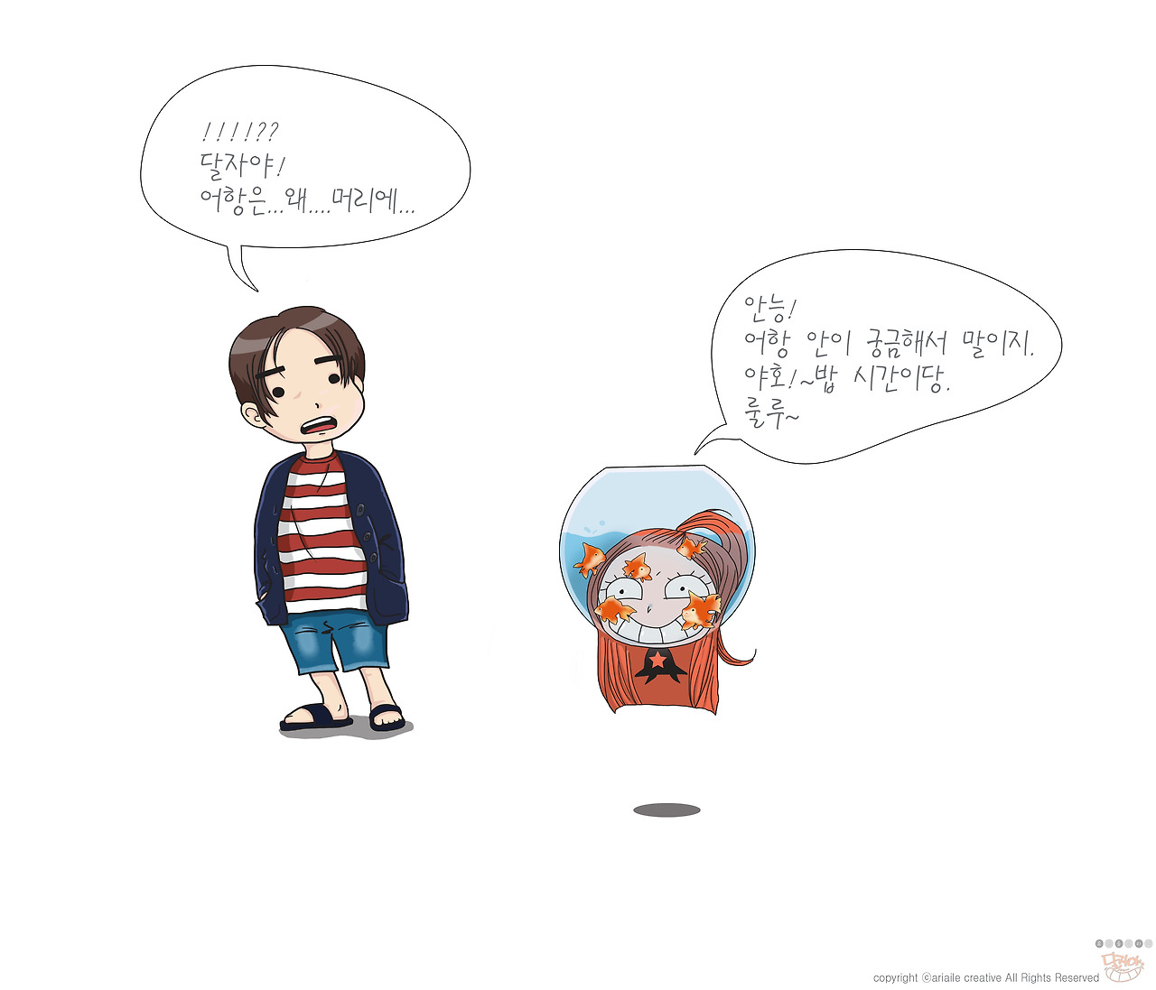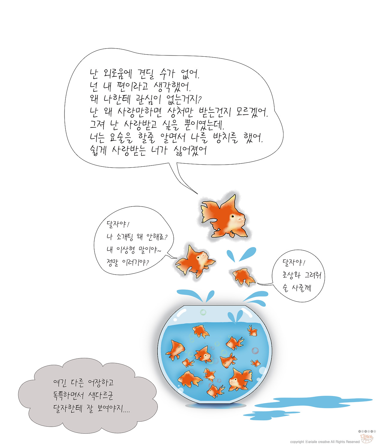 어느 날 어항 속에서 물고기가 머라고 머라고 나에게 말을 걸어오기 시작했다.