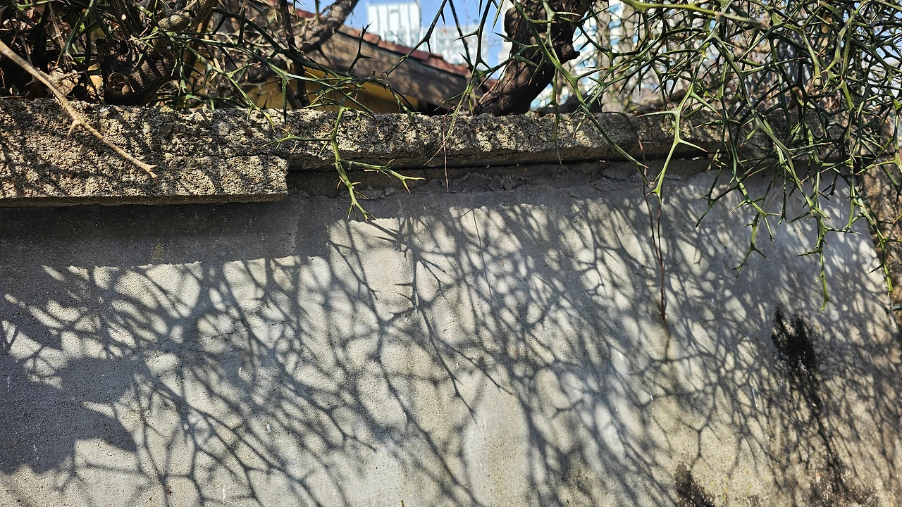 우리가 꽂혔던 폐가, 북중길 5-17은 생긴 모양을 보니 수십 년 전 이곳이 개발될 때 들어선 공동주택 중 한 채가 아닐까 싶다. 담장과 대문은 잔뜩 기울어졌지만 오래 자란 탱자나무 울타리의 가시가 생생하다. 그리 좁지 않은 마당에 큰 꽃나무들이 제법 여럿이다. 폐가는 한 채뿐이고 깨끗하고 잘 가꿔진 모습 그대로 시간이 멈춘듯하다. 평일 한낮에 개 짖는 소리뿐인 이 골목이 머잖아 꽃대궐로 바뀌리라는 기대에 조금 설렌다.