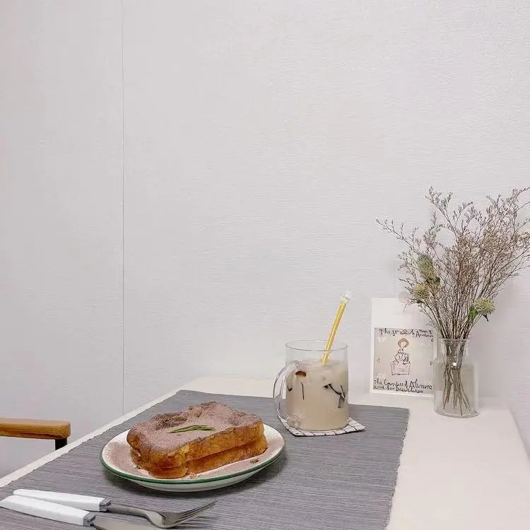 눈을 뜨지도 않은 채 온몸의 후각을 동원하여 냄새를 맡기 시작합니다. 향긋한 버터와 토스트 향이 코끝을 간질거리며 쌉쌀한 밀크티의 향연이 온 방안을 감싸 이불속까지 슬그머니 들어옵니다.