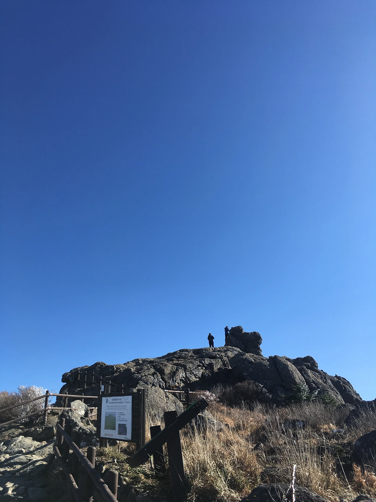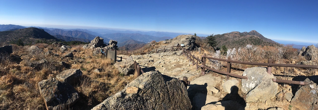 붕대를 동여매고 나선 길, 완만한 경사로를 따라 쭉 걸었다. 지금까지와는 다른 길이 나타났다. 산의 뼈가 드러난 벼랑도 아니고, 울창한 숲도 아니었다. 무릎 아래로 자란 풀들. 완만한 경사로 옆으로 습지가 이어졌다. 표지판에 세석평전 하고 적혀있었다. 경사로 끝에는 커다란 돌 하나가 툭 튀어나와 있었다. 올라갈 수 있게끔 나무 안전바가 설치되어 있었는데, 출발한 지는 얼마 지나지 않았지만 다들 모여서 풍경을 감상하길래 나도 따라 올라갔다. 그곳은 지리산의 심장부였다.