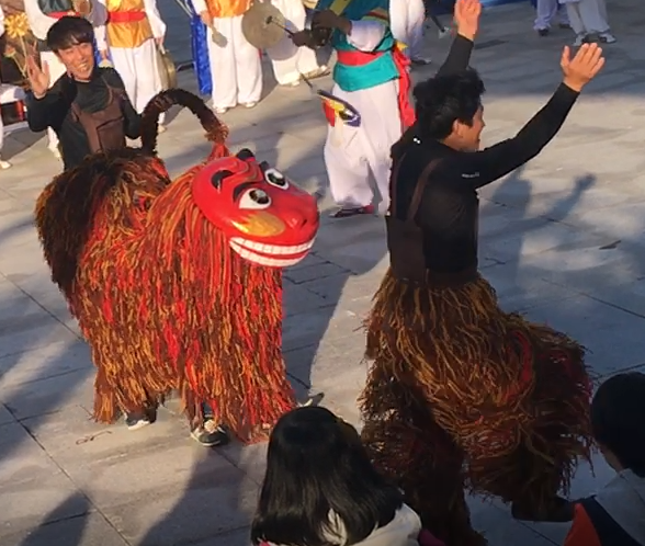 11월 1일 아침, 긴장되는 아침엔 피로가 느껴지지 않는다. 각성 주사를 맞은 것만 같다. 항상 그랬다. 오늘은 김포에서 사자춤을 추고 오후가 되어 평택에 돌아오는 일정이다. 기차 출발 시간이 늦은 밤이므로, 일정 자체에는 여유가 있었지만 다시 돌아와서 옷을 갈아입고, 가방을 챙겼다간 늦을지 모른다는 생각에 출근부터 등산복+등산배낭+등산화 풀세트를 장착했다. 노란색과 초록색으로 어딜 가나 눈에 톡톡 튀는 등산재킷이 모두에게 내 계획을 말해주고 있었다. 특별한 사람이 된 것 같은 기분에 조금 우쭐해했다.