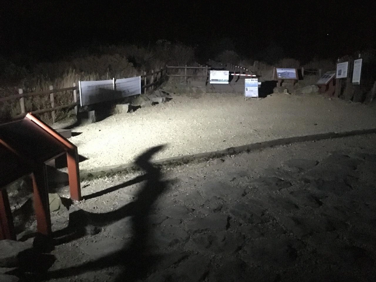 여성분의 만류를 가볍게 제지하고 아저씨가 말을 걸어왔다. 내가 반응을 보이자 아저씨는 사진을 찍어달라며 내게 스마트폰을 넌지시 건냈다. 나는 취사장의 불빛을 라이트 삼아 각도를 잡았다. 하나, 둘, 셋, 찰칵. 아저씨는 프레임 속에 있는 것은 희미한 가로등 뿐, 풍경사진이랄것도 못되었는데 만족스러운 듯 빙그레 웃었다. 쉬는 김에 이것 저것 이야기를 잠시 나누었다. 아주머니는 지리산은 물론이고 산이라고는 다녀본 일이 도통 없는 초보 등산객이었는데, 이 산 저 산 안다녀본 산이 없는 아저씨가 아주머니를 졸라 아침 산행을 오게 되었다고 했다. 짐이 왜 이렇게 많냐며, 아주머니가 묻자 아저씨가 젊은 총각은 2박 3일짜리 종주 코스를 가는 거라 짐이 많다고 아는체 하고 동의를 구했다. 나는 조용히 웃기만 했다. 10분 가량 쉬었을까, 하늘이 도착했을 당시보다는 약간 밝아진 기분이었다. 일정이 많이 남았으므로 출발하기로 하였다. 내가 일어서자 노부부도 함께 따라 나섰다. 노고단은 십분 정도 거리에 있었다.