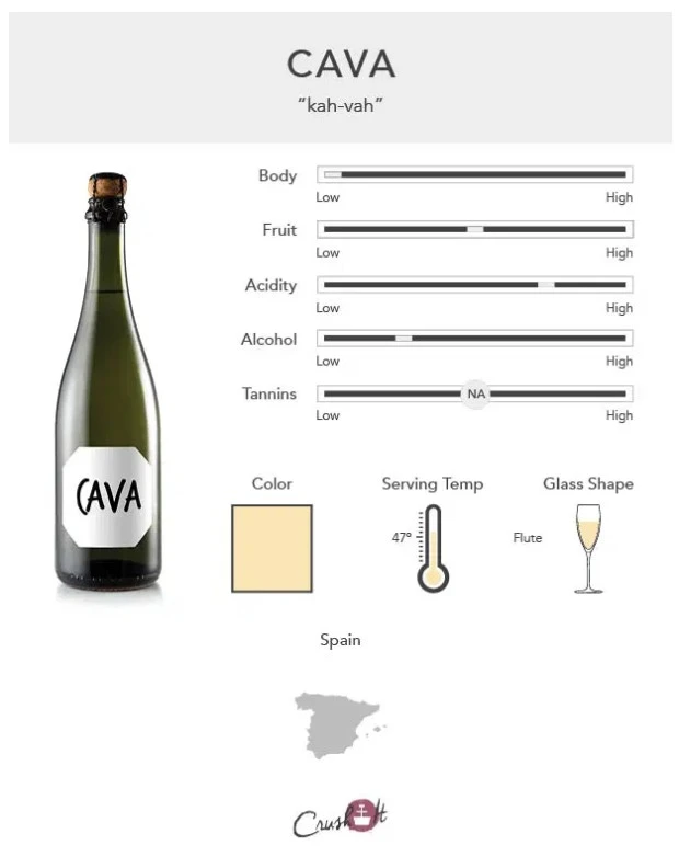 이탈리아의 Spumante(스푸만테), 독일의 Sekt(젝트)는 프랑스 상파뉴 전통방식과는 조금 다른 방식으로 스파클링 와인을 생산하는 경우가 많은데 반해, 스페인의 CAVA는 대부분 프랑스 상파뉴 방식으로 제조를 한다. CAVA도 샴페인과 마찬가지로 병 속에서 2차 발효를 한다.