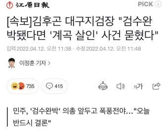 “저는 계곡 살인사건 관련해 경찰의 내사종결 의견에 대해 의견대로 내사 종결할 것을 지휘했다. 저의 무능함으로 인해 피해자 분의 억울한 죽음에 대한 진실이 묻힐 뻔했다. 피해자 분과 유족분들께 진심으로 사죄드린다.”