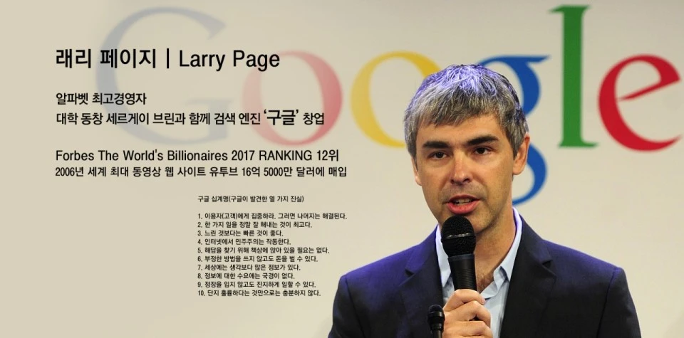 미국의 사업가이자 세르게이 브린과 함께 구글을 공동 창업한 컴퓨터 과학자이자 경영자로, 2011년 4월 4일에 에릭 슈밋의 뒤를 이어 구글의 최고경영자 자리를 맡기도 했던 로렌스 에드워드 래리 페이지(Lawrence Edward Larry Page)의 이야기이다.
