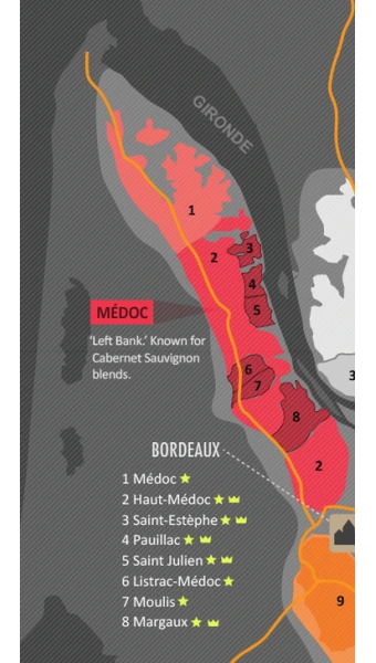 이곳의 떼루아는 다른 지역보다 상대적으로 변화의 기복이 크지 않은 일관성을 보여준다. 자갈과 진흙이 섞인 토양은 그 두께가 수백 미터에 달해 포도나무가 더욱 더 깊이 뿌리를 내릴 수 있다. 이런 환경에 환상의 궁합을 보이는 품종이 바로 까베르네 소비뇽이다. 생 줄리앙에는 그랑크뤼 클라세 샤또 11곳이 몰려 있다.