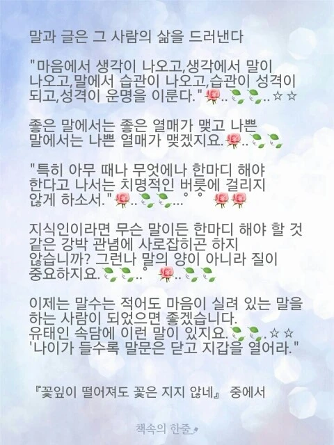 하지만, 내 글을 한 번이라도 읽고 라이킷을 찍거나 댓글을 단 이들의 글을 하나하나 꼼꼼히 다 읽는다. 그리고 그 행간에서 그들이 어떤 사람인지를 파악한다. 수사하거나 조사하기 위한 목적이 아닌 몸에 밴 행동일 뿐이고, 내 글을 정성 들여 읽어주는 사람들에 대한 최소한의 예의이다. 그렇게 배웠고, 그렇게 가르치고 있기에 그것은 내게 있어 당연한 것이다.