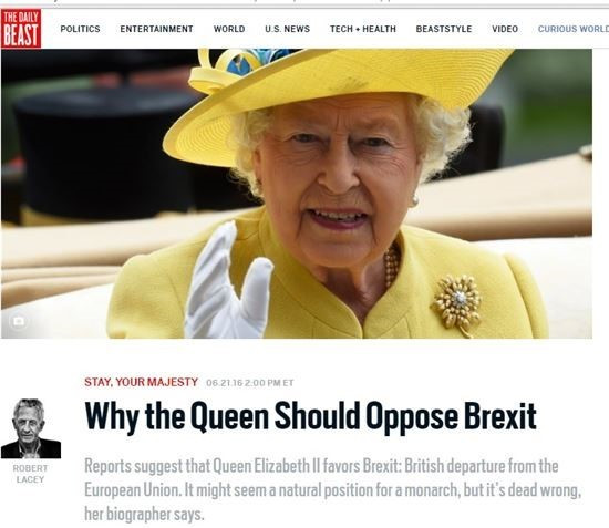 <더 선>의 주장에 따르면 브렉시트 투표 직전 식사 자리에서 유럽연합 잔류에 대한 회의적인 뉘앙스의 발언이 있었다는 보도가 있었는데, 탈퇴파에서 이를 막판 캠페인에 활용하기도 했다. 여왕이 저녁 식사 자리에서 "영국이 유럽의 일부여야만 하는 이유 3가지를 대라."고 대놓고(?) 찔러말했다는 것이다. '여왕이 브렉시트를 두둔한 것 아니냐'는 의혹이 제기된 구체적 언급이 보도된 것이다.
