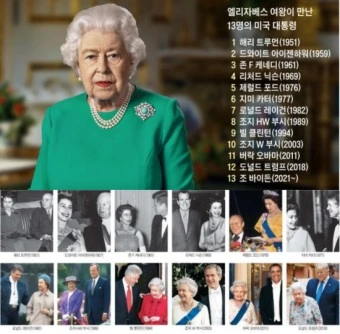 물론 그녀가 실질적인 정치적 통수권자는 아니지만, 얼마나 오래 그 자리에서 다른 국가원수들을 맞이했는지를 보자면, 그녀의 재임 동안 미국은 대통령만 무려 14명이 바뀌었다.