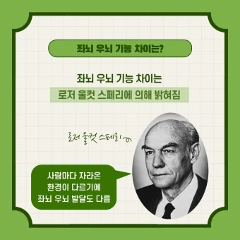 1981년에 <대뇌 반구의 기능 분화에 관한 연구>로 데이비드 H. 허블, 토르스텐 비셀과 함께 노벨 생리학·의학상을 수상한 로저 울컷 스페리( Roger Wolcott Sperry)라고 하는 미국의 신경심리학자이자 신경과학자가 있었습니다.
