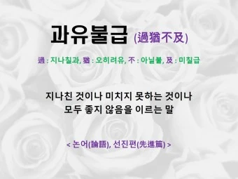 그러자 공자가 그 유명한 ‘과유불급(過猶不及)’이라는 용어로 넘쳐흐른 것이나 미치지 못한 것이다 똑같이 성취에 이르지 못한 것이라고 정리해준다.