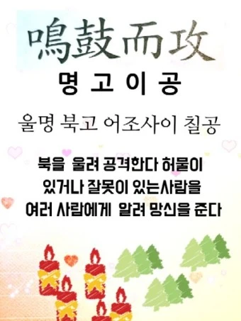 스승 공자의 노여움이 얼마나 컸는지, 공자는 파문을 의미하는 다음과 같은 일갈로 그것이 얼마나 큰 잘못인지를 듣는 이들로 하여금 움찔 놀라게 만든다.