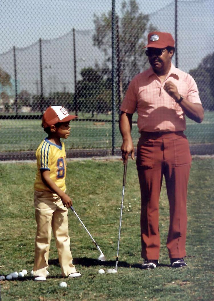 그는 물건을 다룰 줄 알게 되면서 자연스레 아동용 골프채를 휘두르는 등 탁월한 골프 감각을 보였다. 그의 아버지는 본인이 재적 중인 Los Alamitos의 Joint Forces Traning Base 근처 군인 골프장을 통해 어린 아들을 대동하며 그린 및 그린 주변의 숏 게임을 시키며 골프에 익숙하게 하였다.