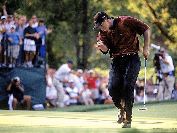 3개 홀을 치러 총스코어가 낮은 선수가 우승을 차지하는 PGA Championship 플레이오프 룰에 따라 타이거와 밥 메이는 그야말로 피를 말리는 접전에 들어갔다. 첫 홀에서 롱 퍼팅을 성공시킨 타이거가 나머지 2개 홀을 파로 세이브하며, 전 홀에서 파만 기록한 밥 메이를 꺾고 우승을 확정, 드디어 꿈이라고만 여겨졌던 3개 대회 메이저 대회 제패라는 금자탑을 세우게 된다. 이는 벤 호건이 Masters Tournament – U.S. Open – The Open Championship을 연거푸 제패한 1953년 이래 처음 달성된 대기록이었다.