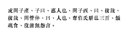或問子産, 子曰: “惠人也.” 問子西, 曰: “彼哉! 彼哉!” 問管仲, 曰: “人也. 奪伯氏騈邑三百, 飯疏食, 沒齒無怨言.”